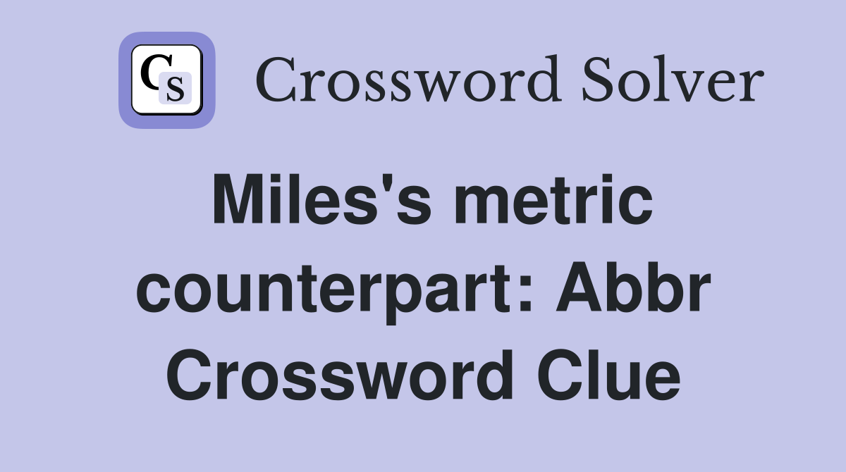 Miles s metric counterpart: Abbr Crossword Clue Answers Crossword