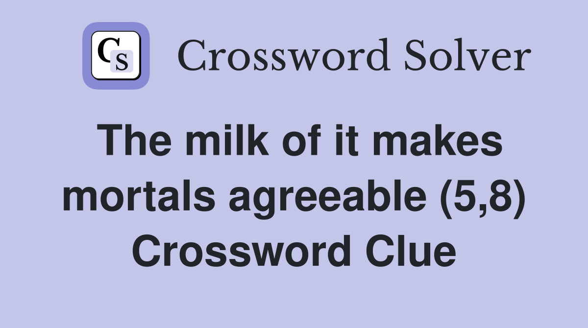 The milk of it makes mortals agreeable (5 8) Crossword Clue Answers