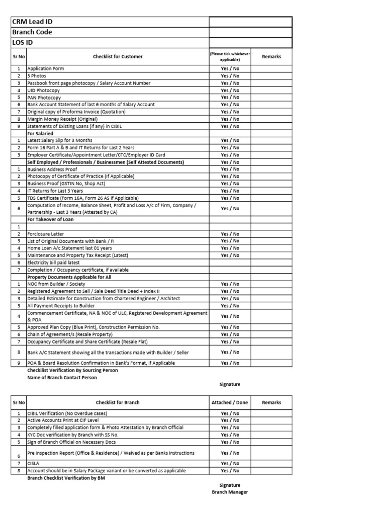 Loan Application Checklist Loan Officer Checklist Loan Processor