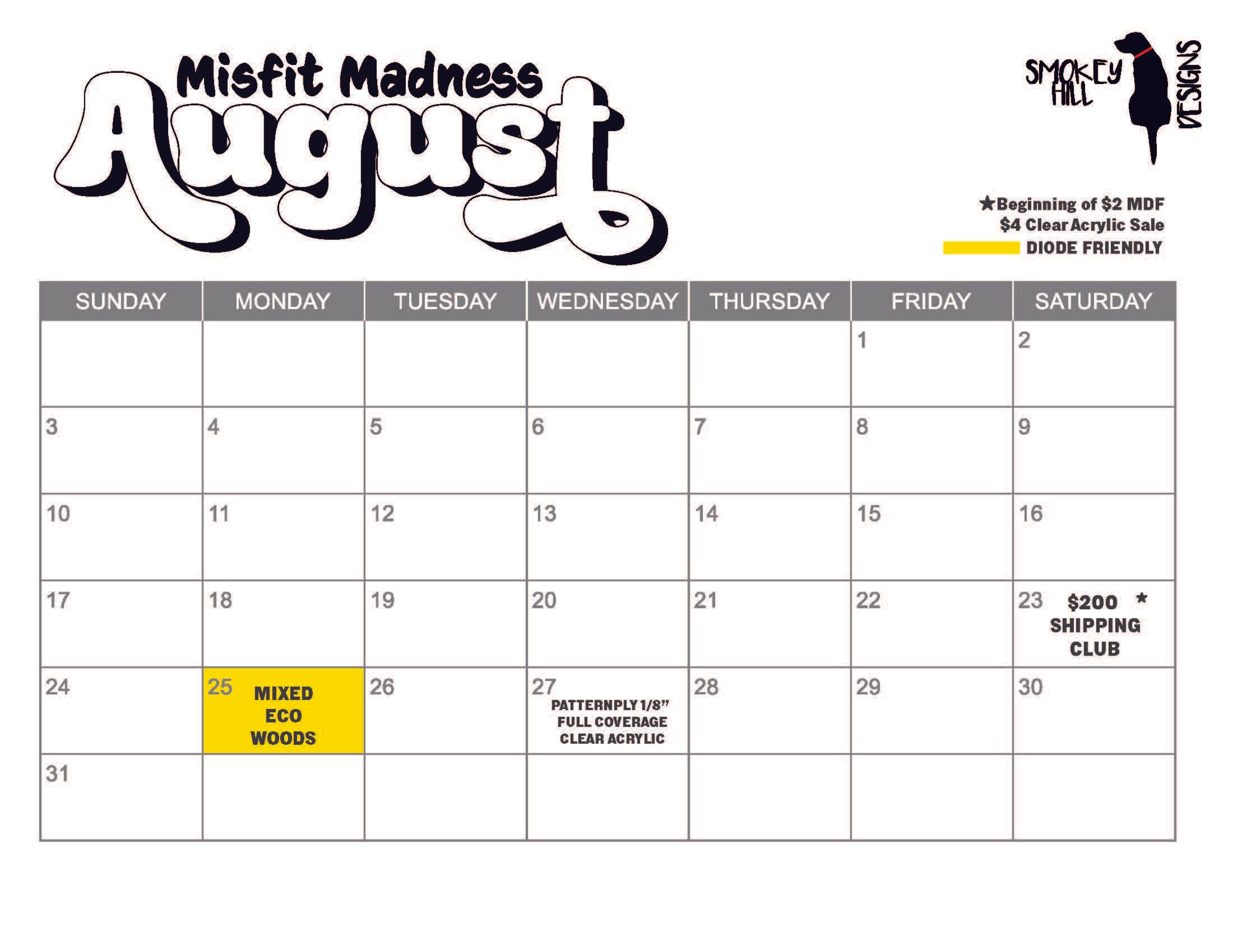 2025 August Misfit Calendar Smokey Hill Designs