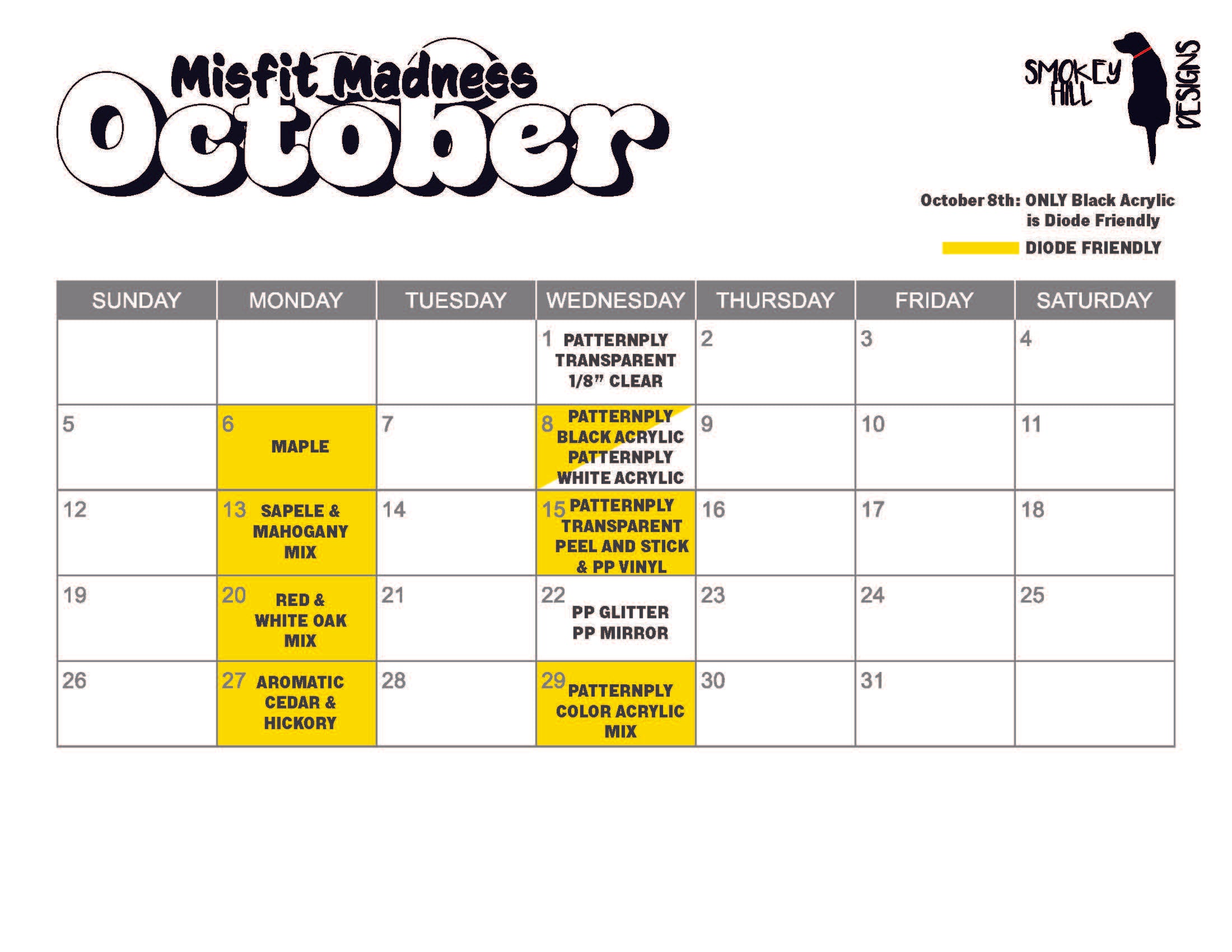 2025 October Misfit Calendar Smokey Hill Designs