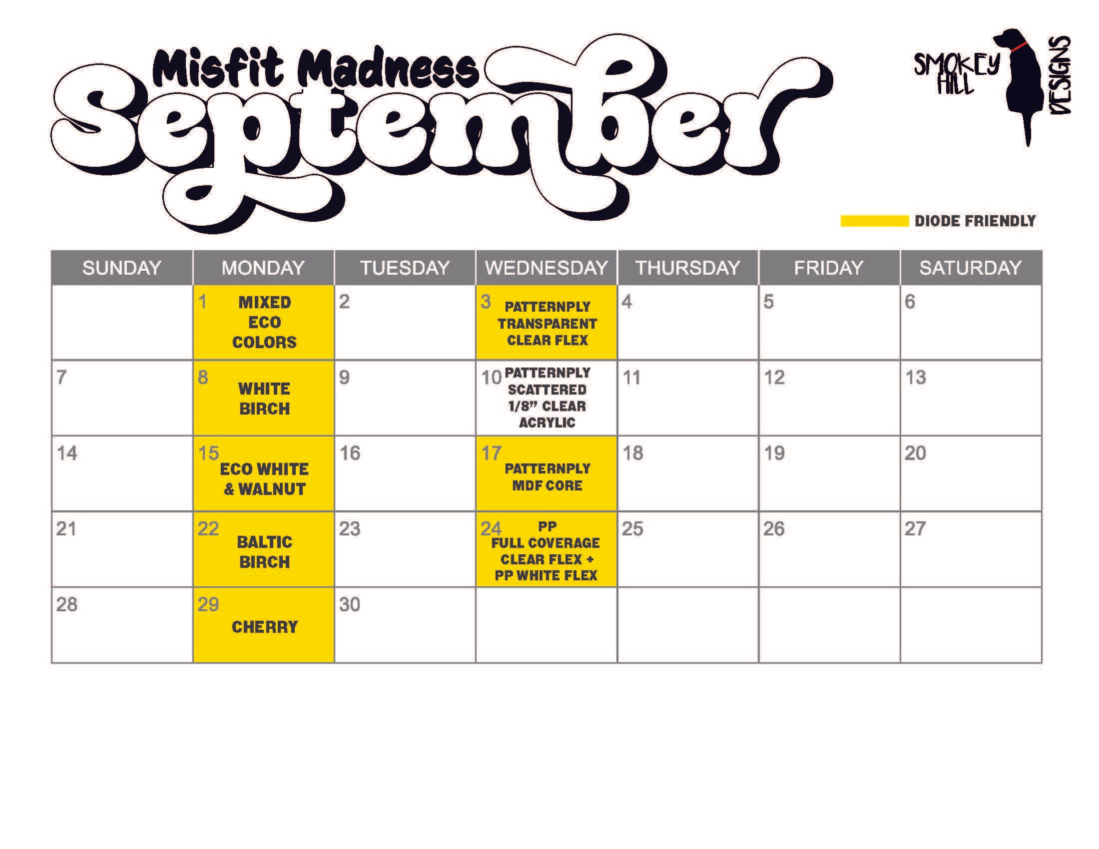2025 September Misfit Calendar Smokey Hill Designs