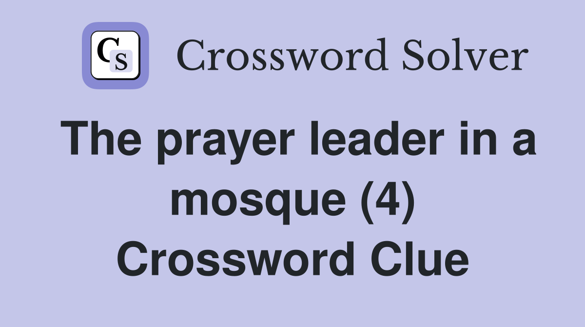The prayer leader in a mosque (4) Crossword Clue Answers Crossword