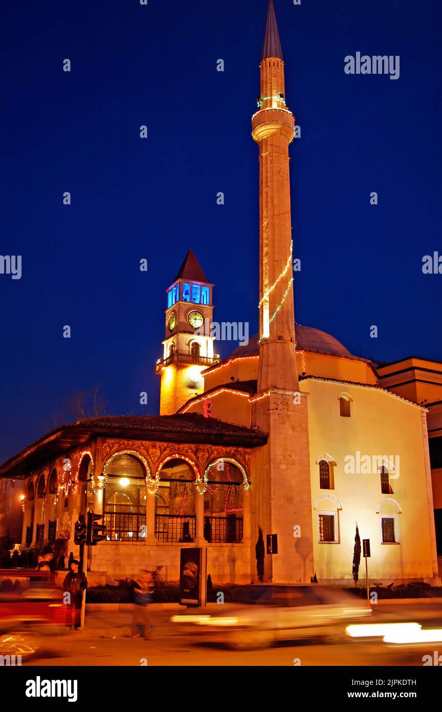 Hajji Et #39 hem Bey Mosque in evening Tirana Albania Stock Photo Alamy