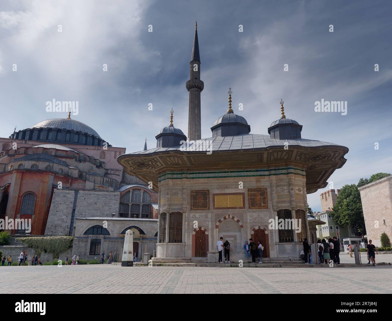 Hagia Sophia Mosque with the Sultan Ahmed III Fountain left Istanbul