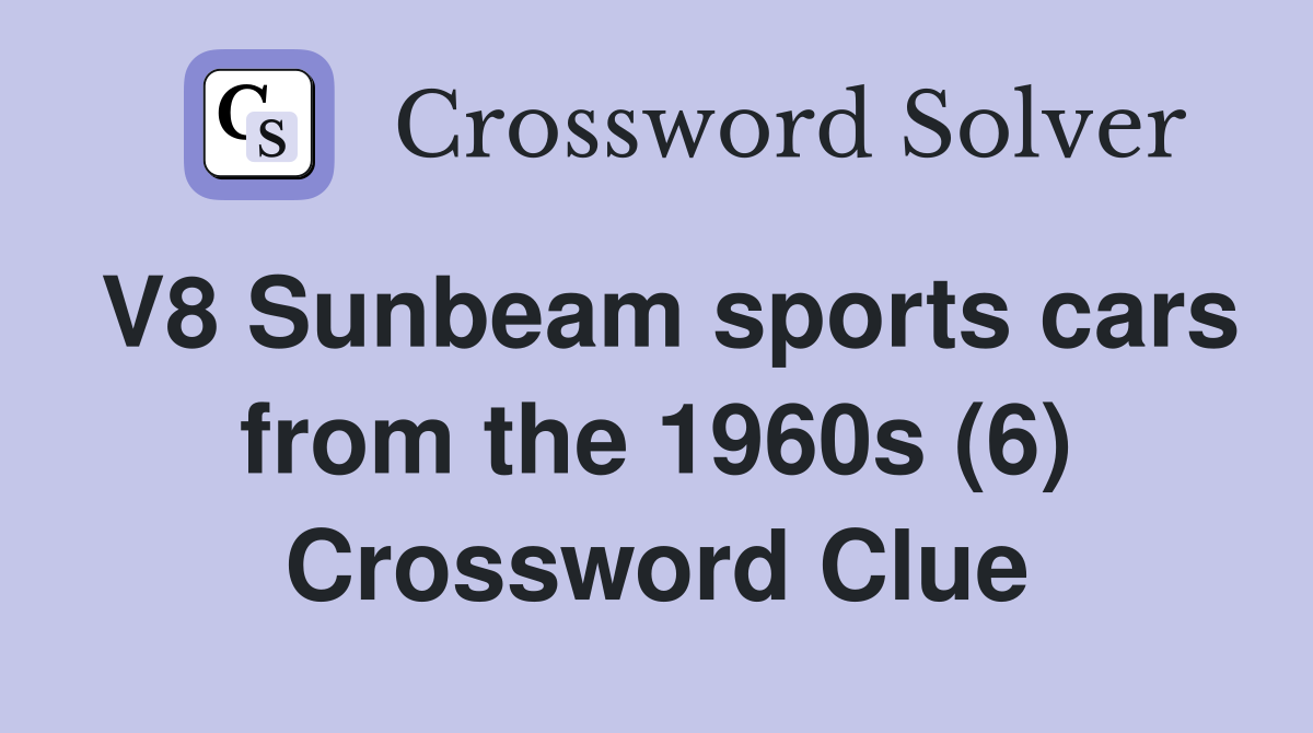 V8 Sunbeam sports cars from the 1960s (6) Crossword Clue Answers