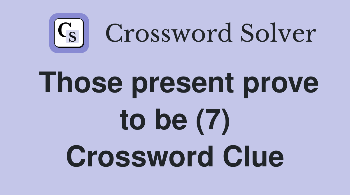 Those present prove to be (7) Crossword Clue Answers Crossword Solver