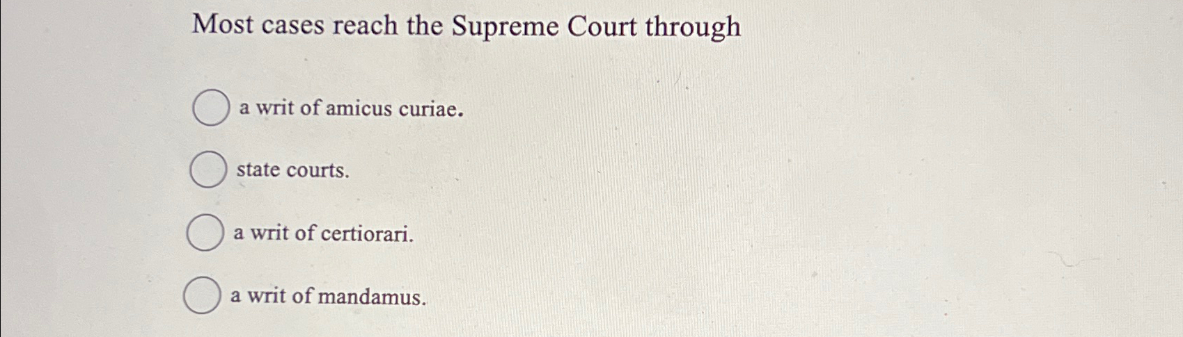 Solved Most cases reach the Supreme Court througha writ of Chegg com