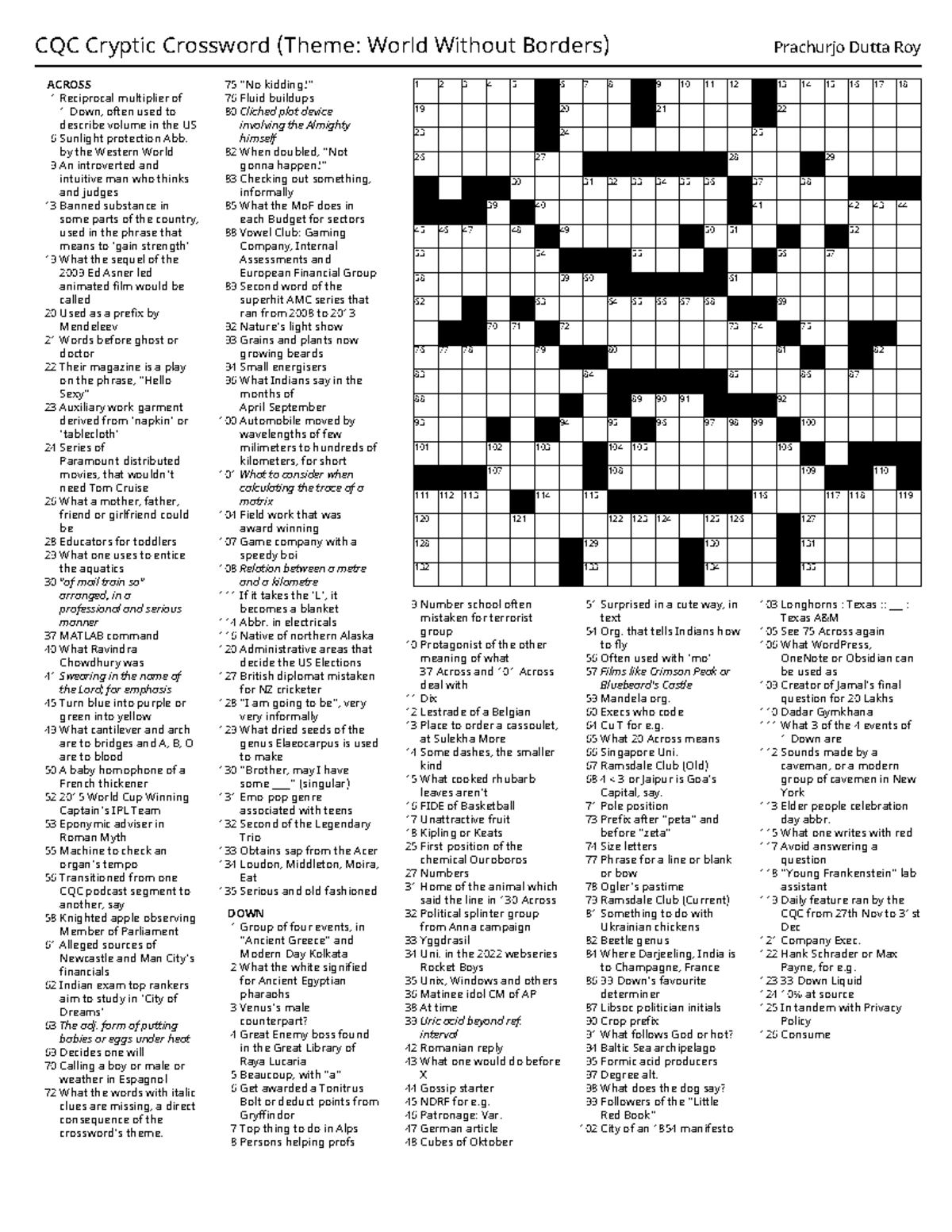 CQC Cryptic Crossword (Theme World Without Borders) by the Western