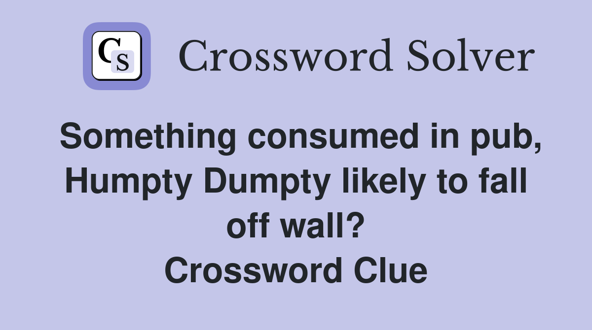 Something consumed in pub Humpty Dumpty likely to fall off wall
