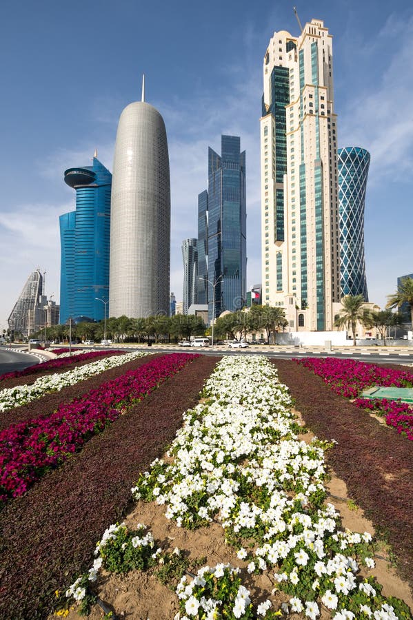 Panoramic View with Modern Skyscrapers in the Centre of Doha Stock