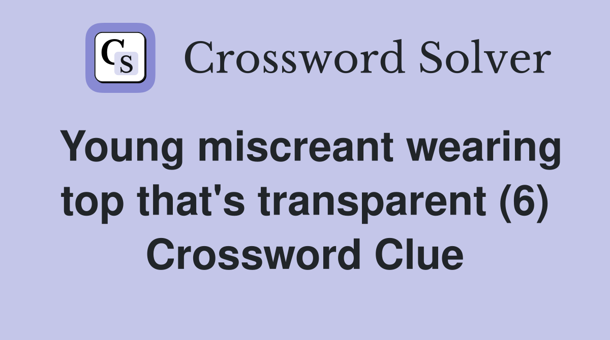 Young miscreant wearing top that s transparent (6) Crossword Clue