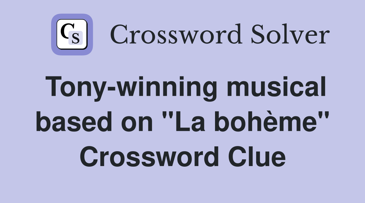 Tony winning musical based on quot La bohème quot Crossword Clue Answers