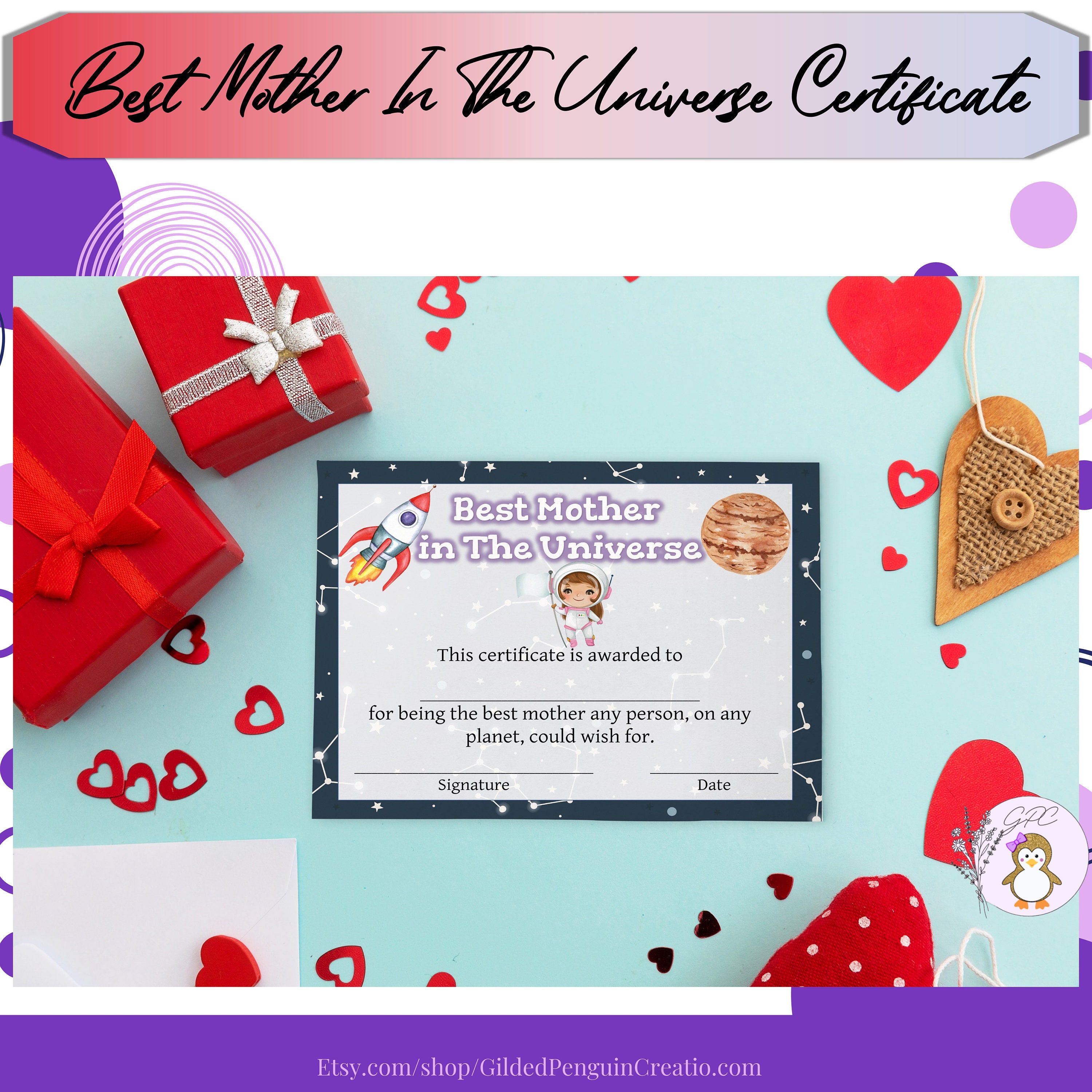 Best Mother in the Universe Certificate Printable Mother #39 s Day Gift