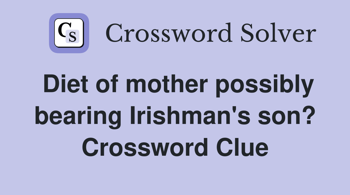 Diet of mother possibly bearing Irishman #39 s son? Crossword Clue