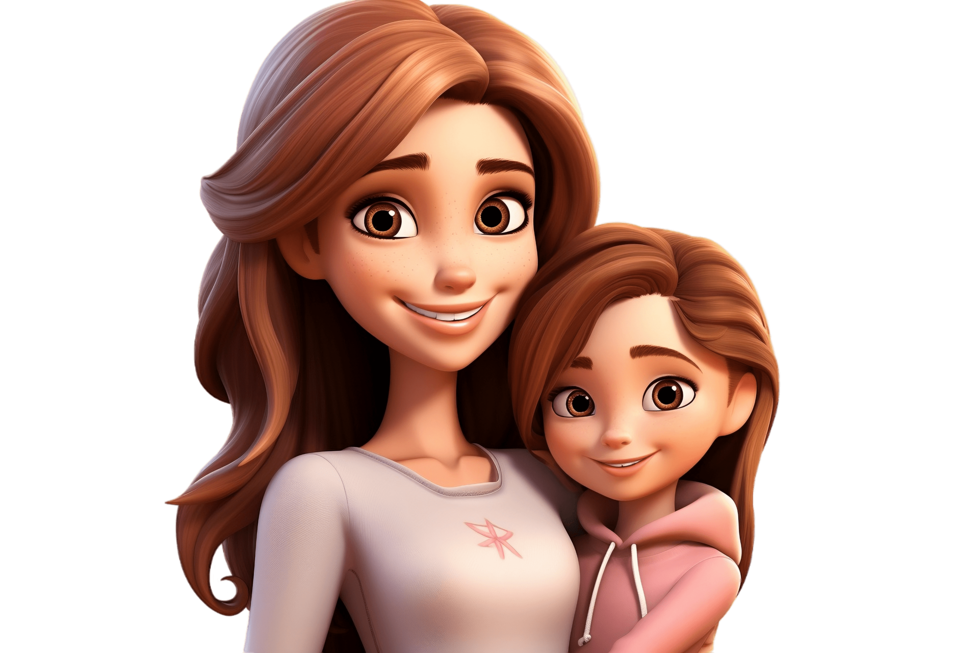 AI generated Adorable 3D Cartoon Mother and Kid Daughter Hug on a