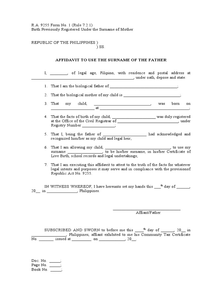 Affidavit To Use Father #39 s Surname PDF