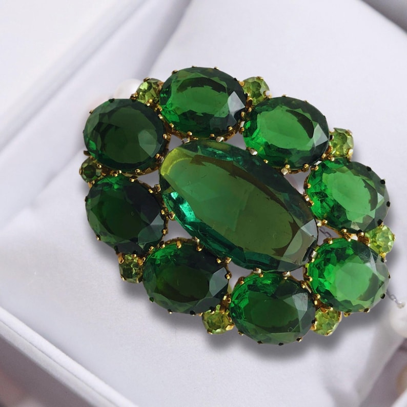 Vintage Emerald Green Rhinestones Brooch Pin 1970 #39 s Jewellery Special