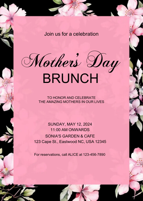 Pink and Black Mothers Day Brunch Invitation Template PosterMyWall