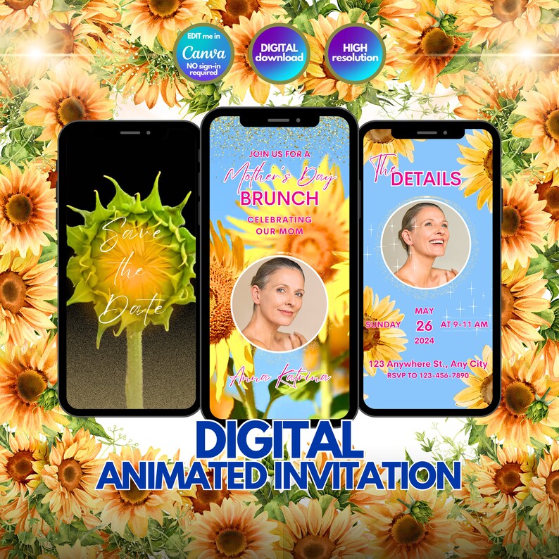 EDITABLE Mothers Day Brunch Invitation Template Yellow Floral Mothers