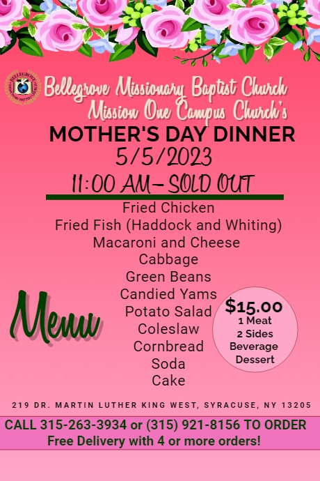 Pink Flowers Mothers Day Menu Template PosterMyWall