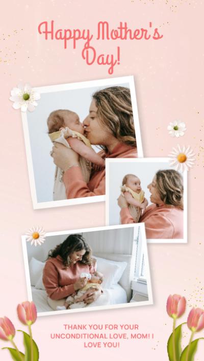 Customizable Pink Floral Happy Mothers Day Love Moment Photo Collage