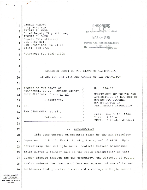 Court documents re: motion for further modification of preliminary