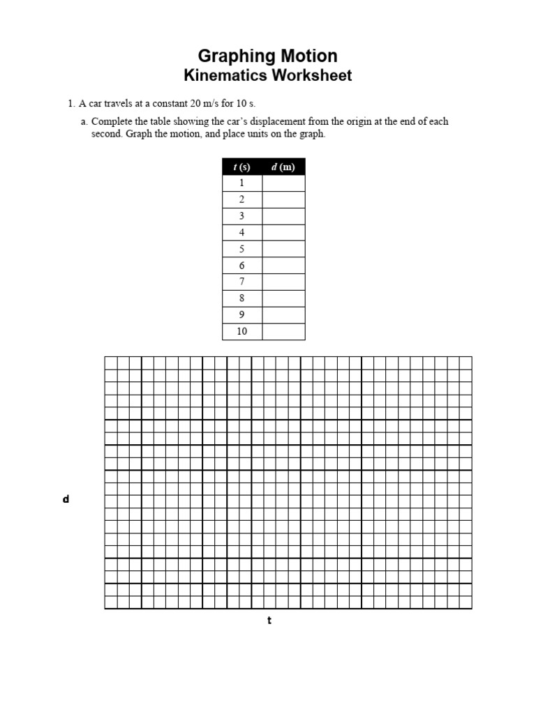 Motion Graphs And Kinematics Worksheet Fill Online Printable