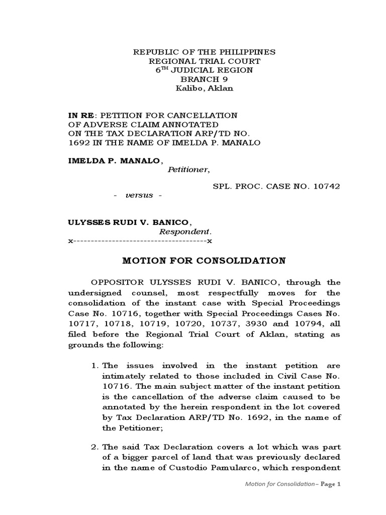 Sample Motion For Consolidation PDF