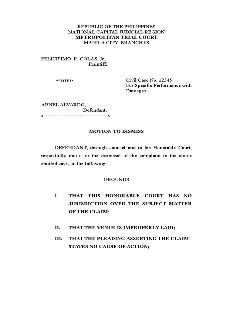Motion To Dismiss Template prntbl concejomunicipaldechinu gov co