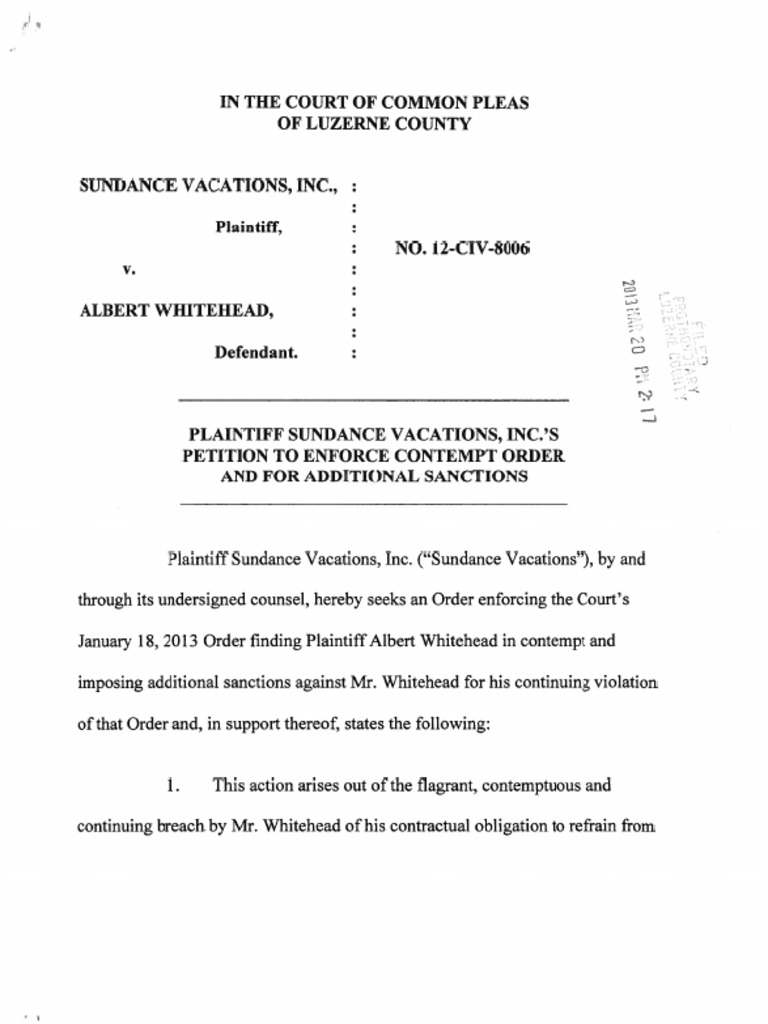 Motion for Order Enforcing SANCTIONS 3 20 13 Facebook Contempt Of Court