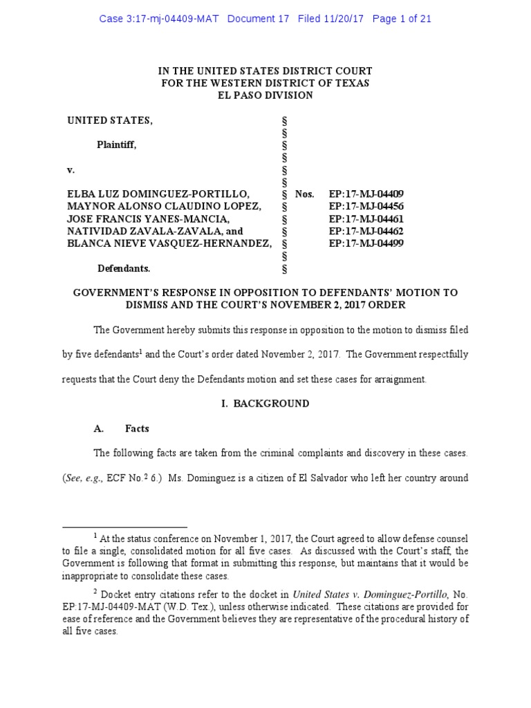 Government Response To Motion To Dismiss Immigrant Cases PDF Plea