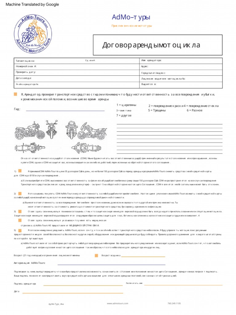 Motorcycle Rental Agreement AdMo Tours PDF Vehicle Insurance