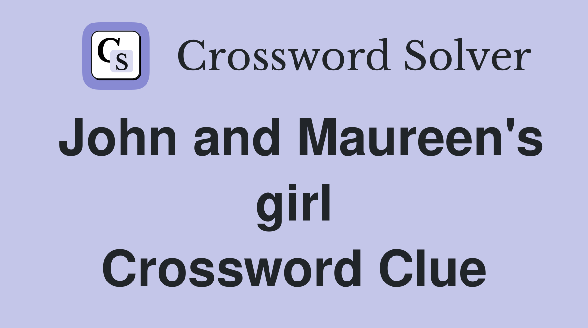 John and Maureen #39 s girl Crossword Clue Answers Crossword Solver