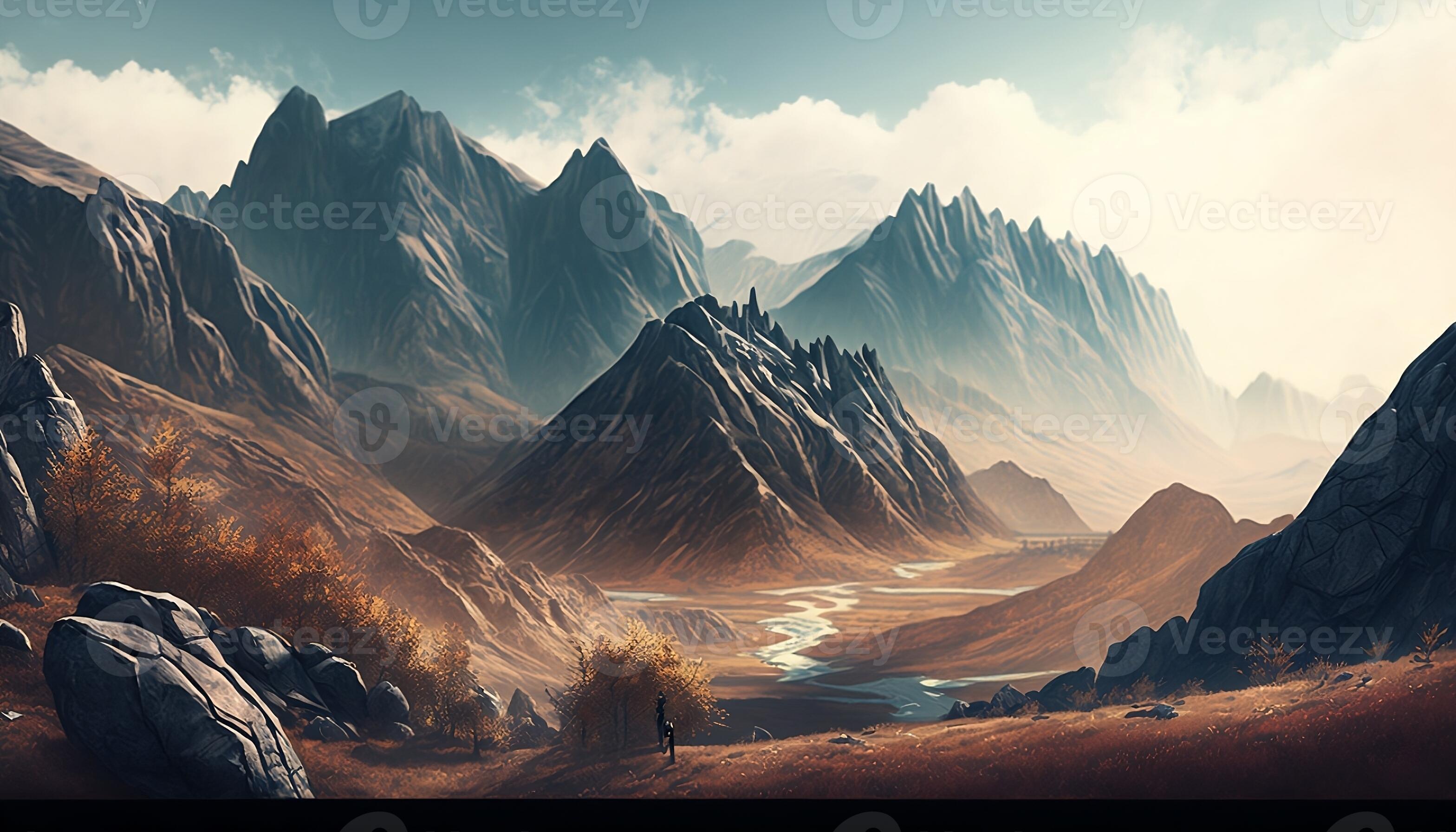 Lanscape Panoramic View of The Mountains Aesthetic Background