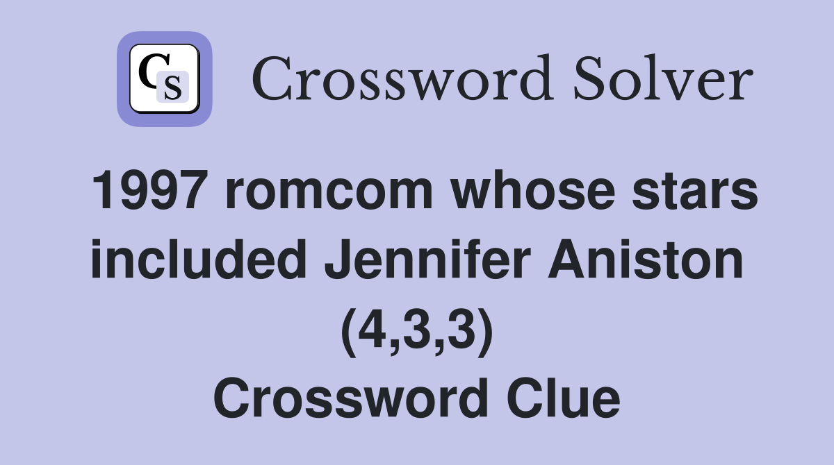 1997 romcom whose stars included Jennifer Aniston (4 3 3) Crossword
