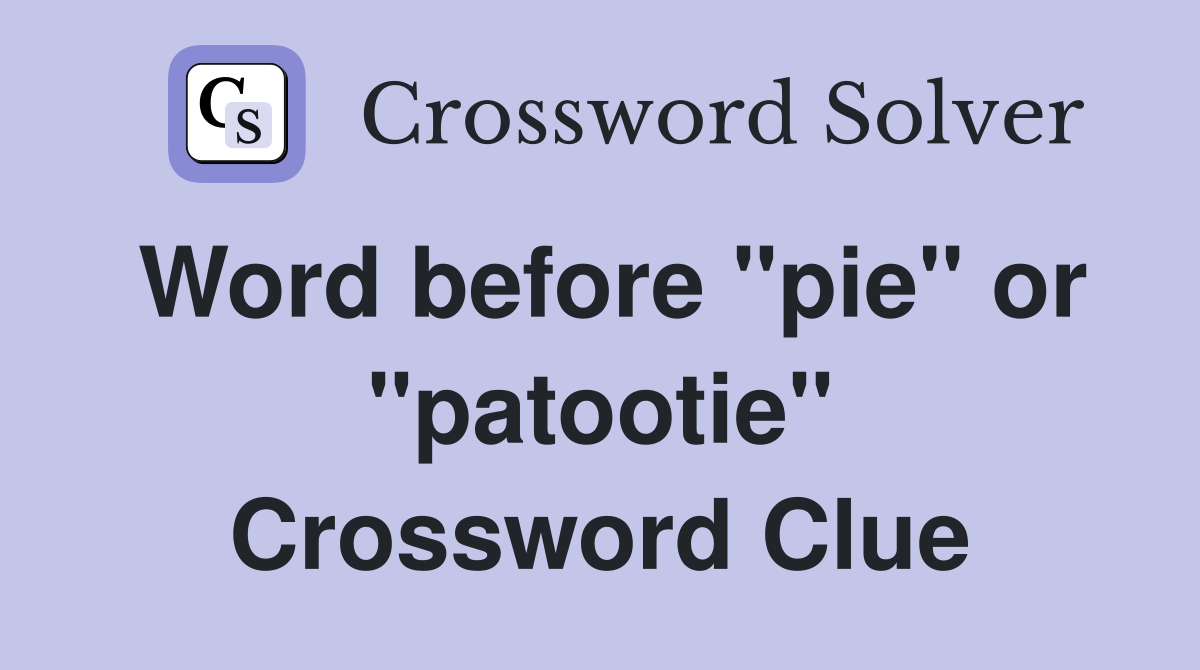 Word before quot pie quot or quot patootie quot Crossword Clue Answers Crossword Solver