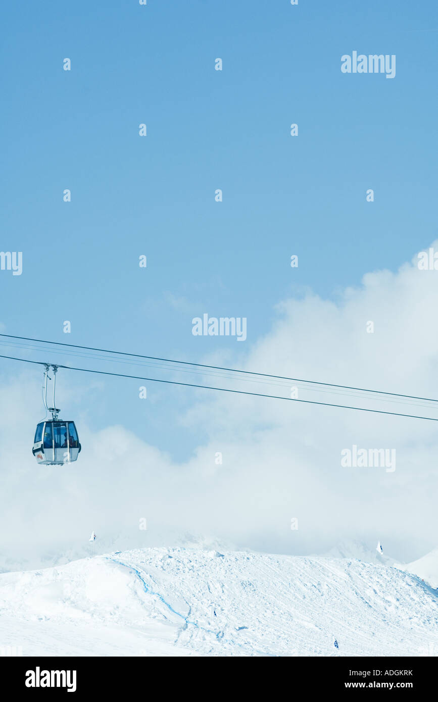 Cable car moving over snow covered slope Stock Photo Alamy