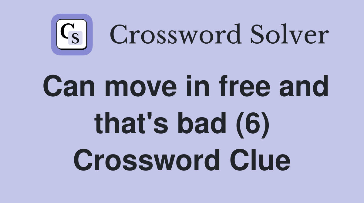 Can move in free and that #39 s bad (6) Crossword Clue Answers