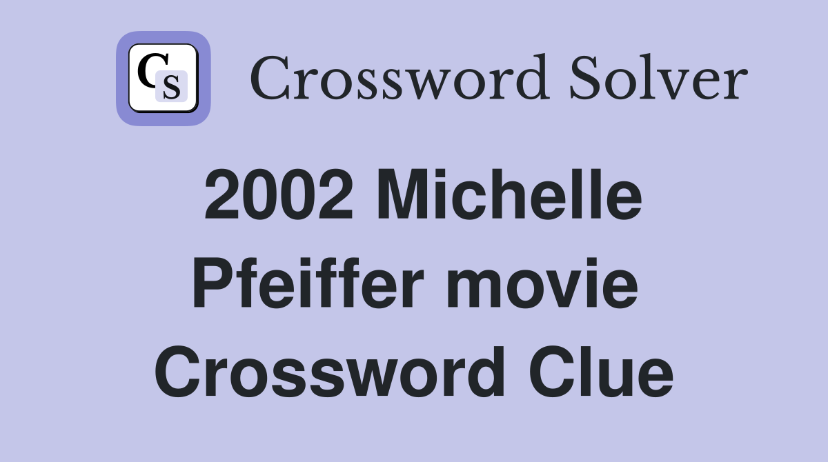 2002 Michelle Pfeiffer movie Crossword Clue Answers Crossword Solver