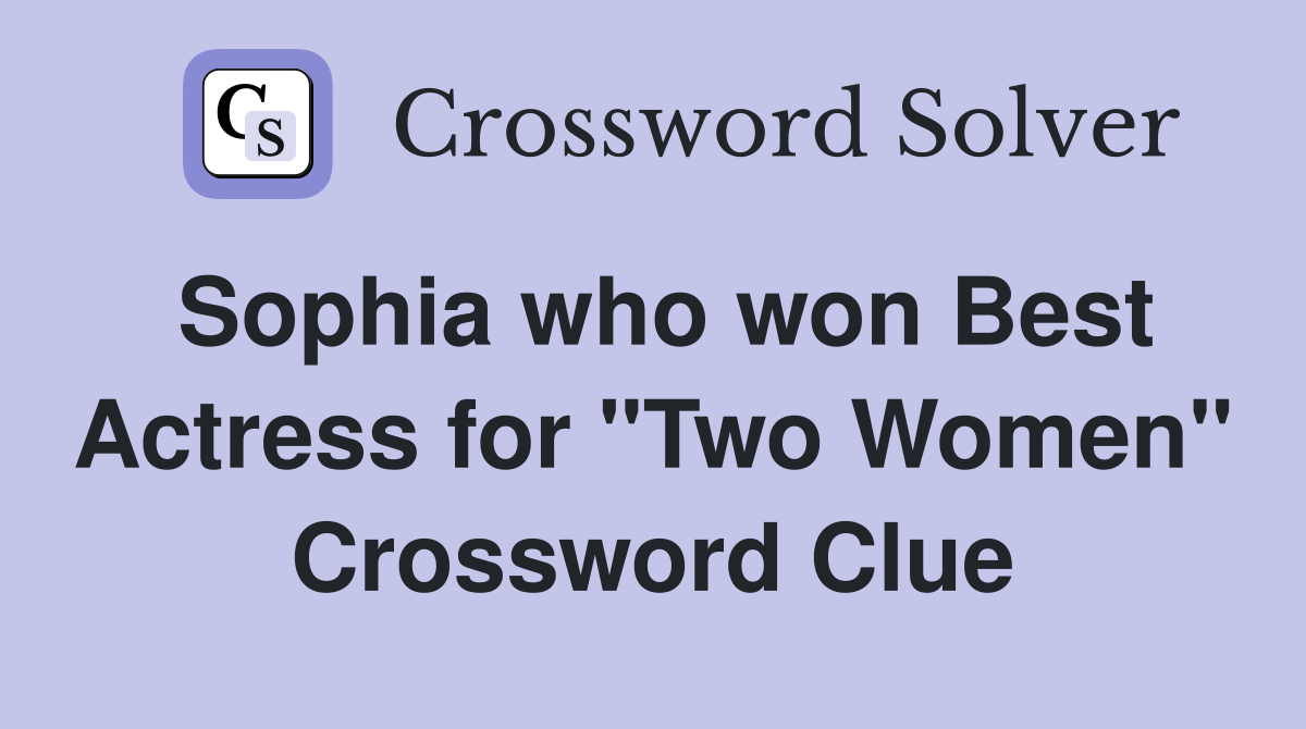 Sophia who won Best Actress for quot Two Women quot Crossword Clue Answers