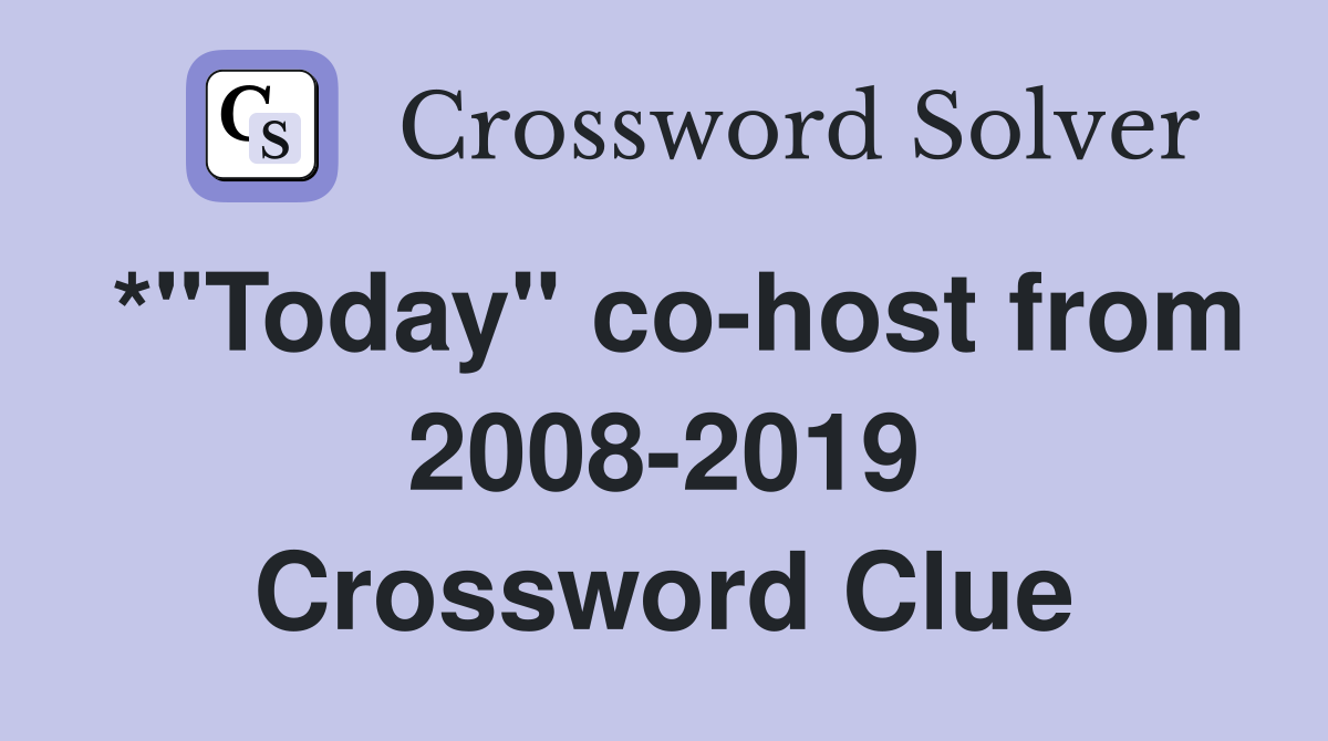 * quot Today quot co host from 2008 2019 Crossword Clue Answers Crossword Solver