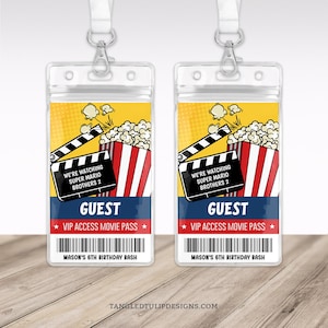 Editable Movie Party VIP Badges VIP Movie Access Pass Tag Boy Movie