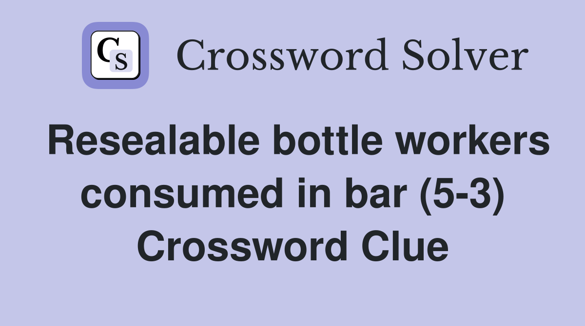 Resealable bottle workers consumed in bar (5 3) Crossword Clue