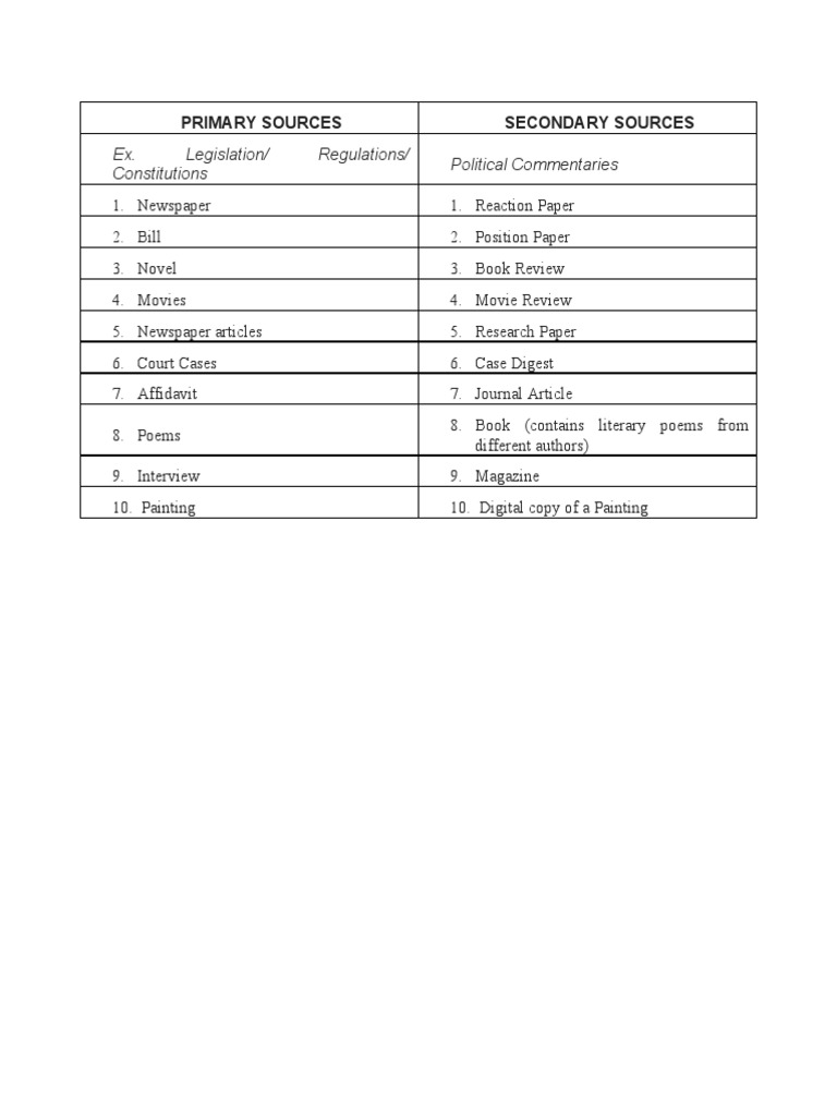 Primary and Secondary Sources PDF General Fiction
