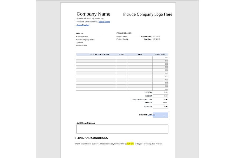 Moving Company Invoice Template in Word Excel Google Docs Google