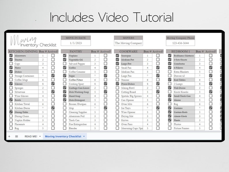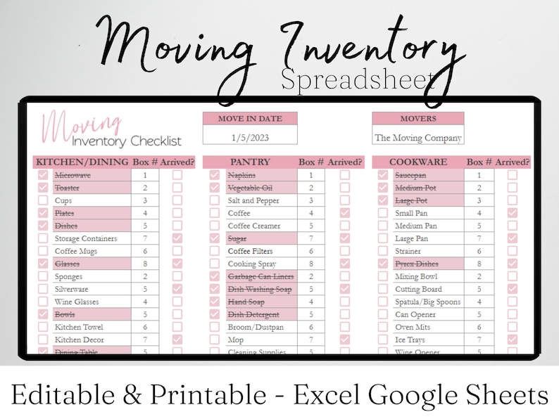 Moving Inventory Template Google Sheets Moving Planner Etsy
