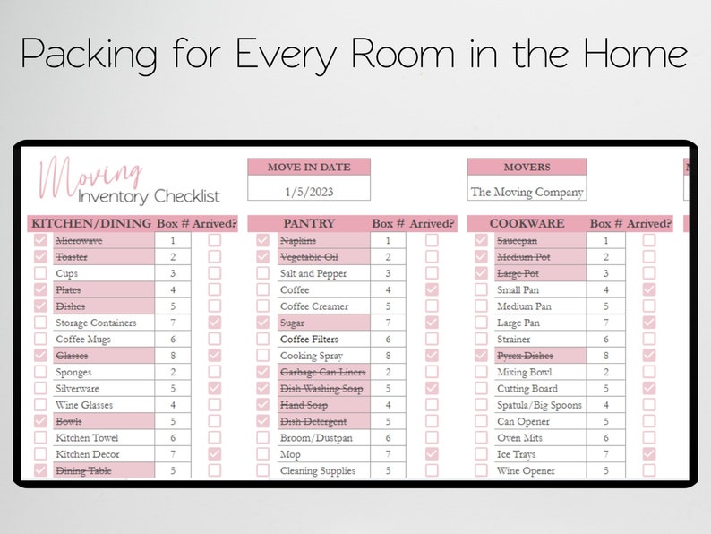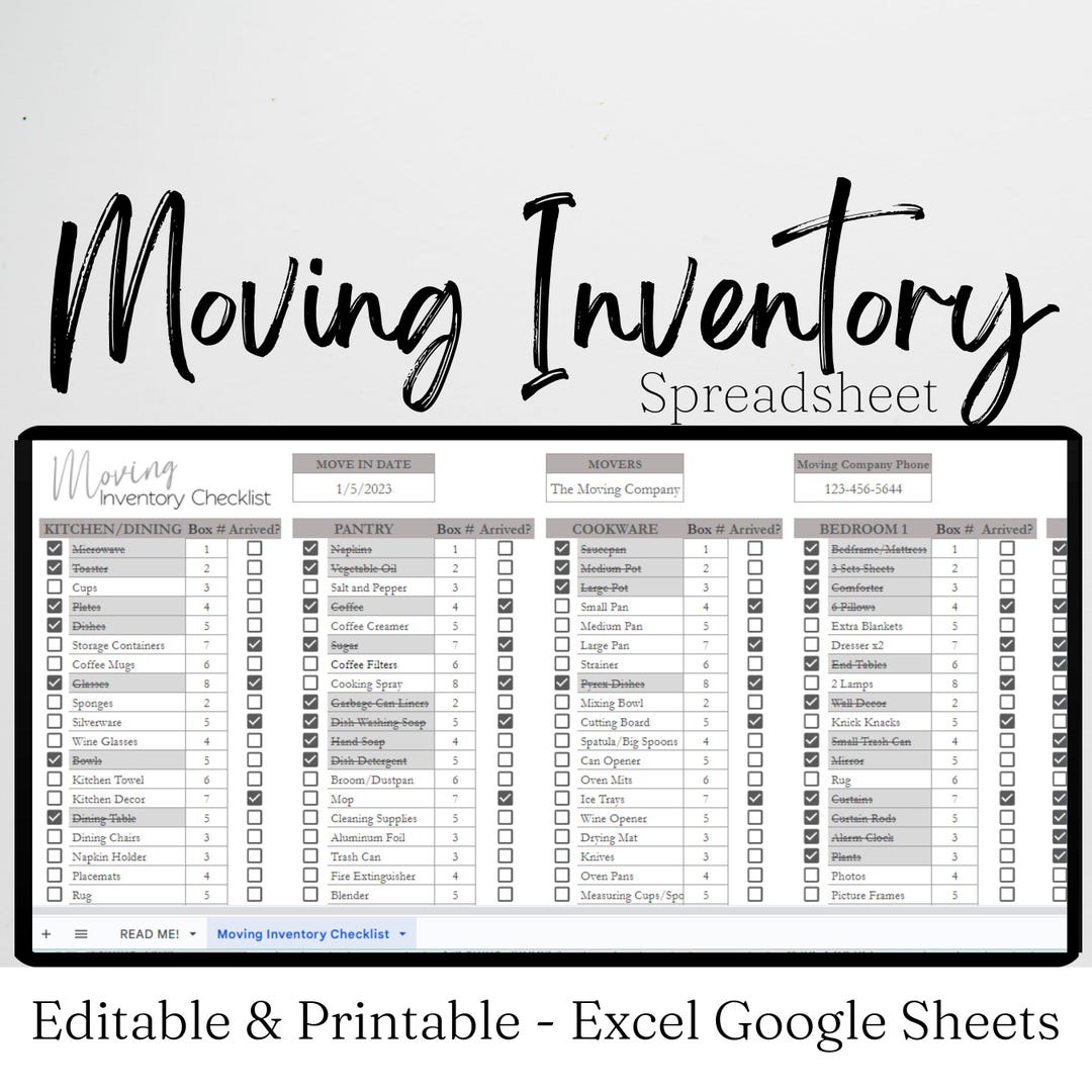 Home Moving Inventory Template Excel Spreadsheet Home Moving Etsy