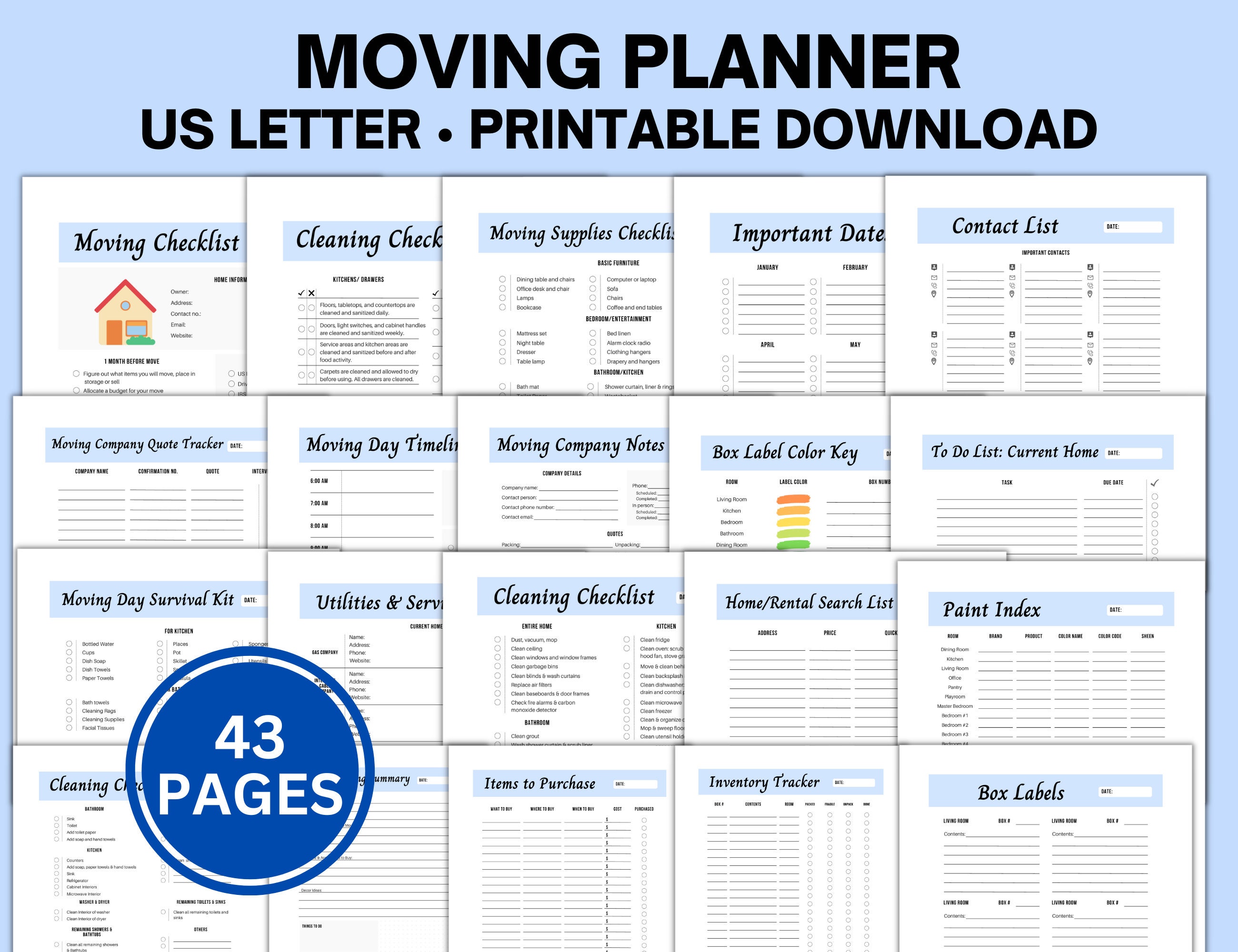 Moving Planner Kit 11 Documents Fillable Printable PDF Etsy