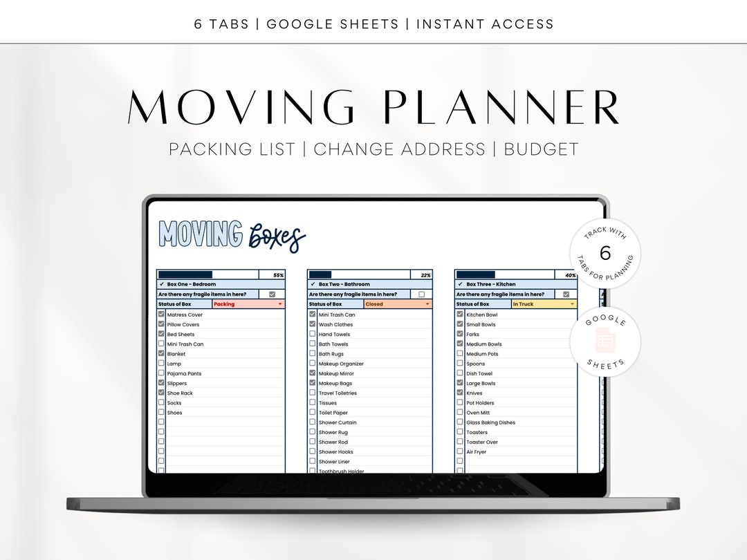 Moving Spreadsheet Planner Checklist Box Labels Budget Change of
